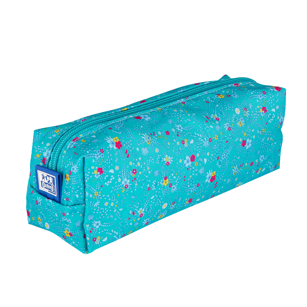 Piórnik z tkaniny poliestrowej z satynowym wykończeniem, który nadaje lekki błysk, odporność na zabrudzenia a jednocześnie podkreśla mocne kolory nawiązujące do kolekcji zeszytów Oxford Floral.