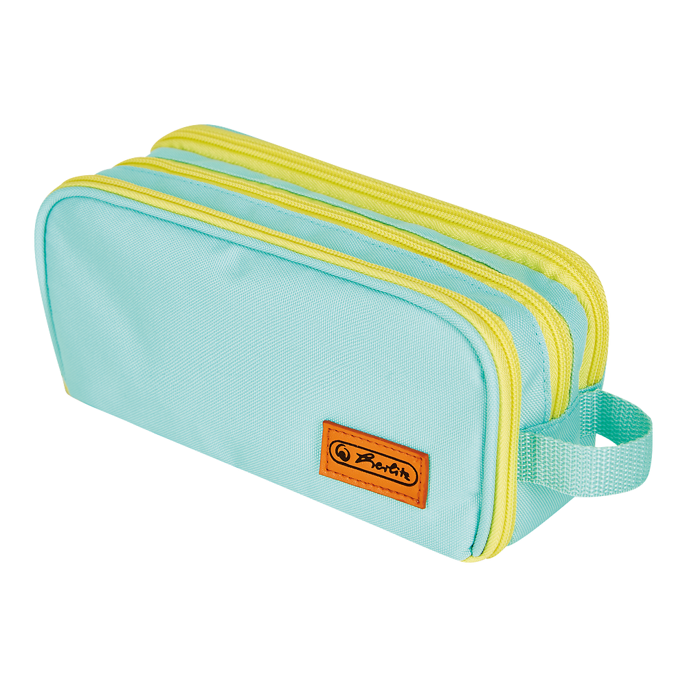 Piórnik saszetka / kosmetyczka trzykomorowa Herlitz - żółto-miętowy
