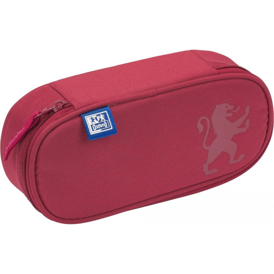 Piórnik na górnej klapie posiada gumowy nadruk w kształcie lwa z logo Oxford. Piórnik jest dodatkowo usztywniony, posiada dużą kieszeń wewnętrzną oraz przegródkę z gumkami.