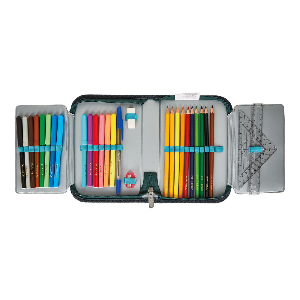 Ten piórnik to świetny wybór dla wszystkich, którzy szukają pojemnego i praktycznego etui na przybory szkolne. Został wykonany z wytrzymałych materiałów, które zapewniają długotrwałą trwałość, a jednocześnie jest bardzo lekki i poręczny. Piórnik zawiera 31 elementów, co oznacza, że znajdziesz w nim wszystko, czego potrzebujesz do pisania, rysowania i kreatywnego działa. Znajdziesz tam między innymi ołówki, długopisy, kredki, mazaki, temperówki, linijki oraz gumki do mazania. Wszystkie te elementy zostały starannie wyselekcjonowane, aby zapewnić użytkownikowi jak największą funkcjonalność oraz wygodę podczas pracy. Ponadto, piórnik ten posiada także dodatkowe kieszenie i przegródki, dzięki którym z łatwością utrzymasz w nim porządek i szybko znajdziesz to, czego potrzebujesz.