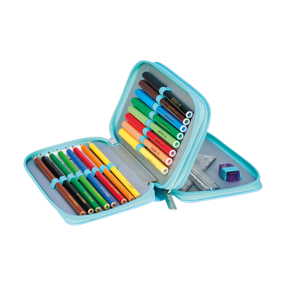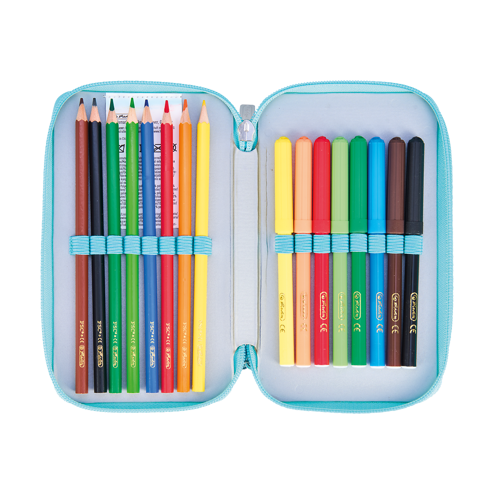 Piórnik szkolny dwukomorowy z wyposażeniem Herlitz