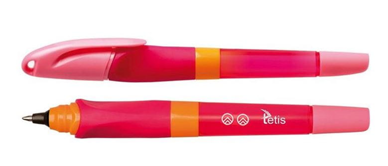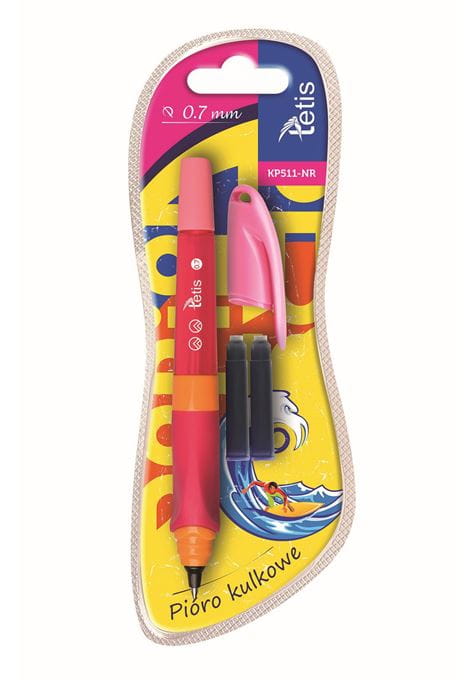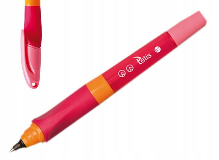 Posiada specjalnie wyprofilowany, miękki, gumowy uchwyt oraz zapasowe naboje w komplecie (2 sztuki). Widoczny poziom zużycia atramentu. Grubość linii pisania 0,7 mm.