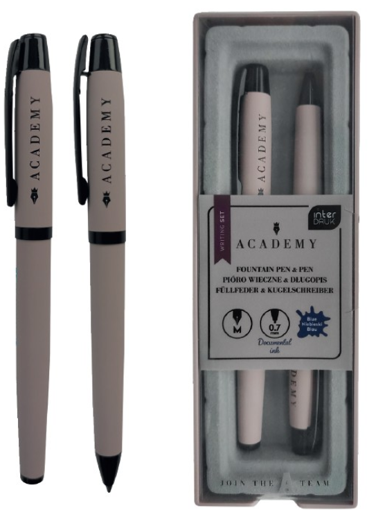 Pióro ze stalówką oraz długopis w eleganckim etui Interdruk seria Academy