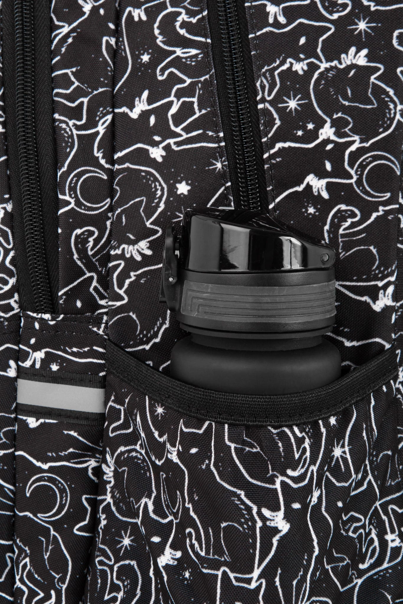 Plecak młodzieżowy Pick Amber - czarny z wzorem białych kotów