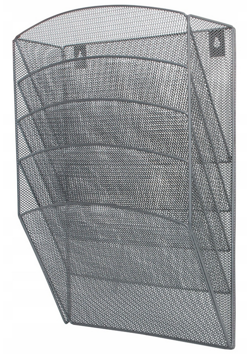 Zestaw 5 metalowych półek na dokumenty, korespondencję, czasopisma, wykonany z metalowej siateczki na tylnej ściance dwa dedykowane otwory do mocowania na ścianie.