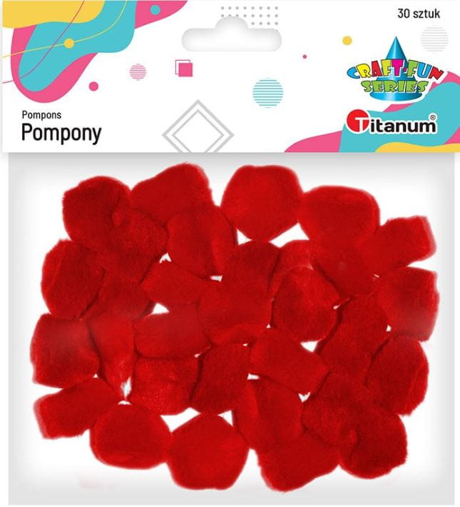 Pompony dekoracyjne poliestrowe Craft-Fun Series - średnica 25 mm 30 sztuk - czerwone