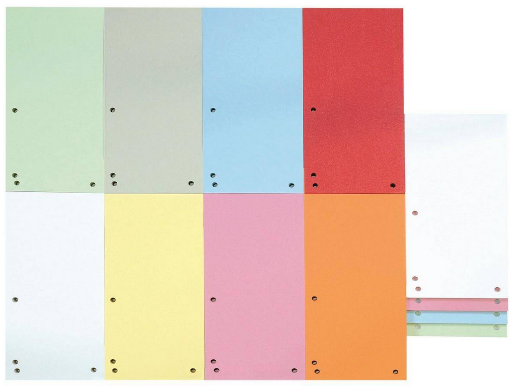 Przekładki 1/3 A4, jednokolorowe. Przeznaczone są do segregowania dokumentów. Przekładki wykonane z grubego kartonu barwionego w masie.