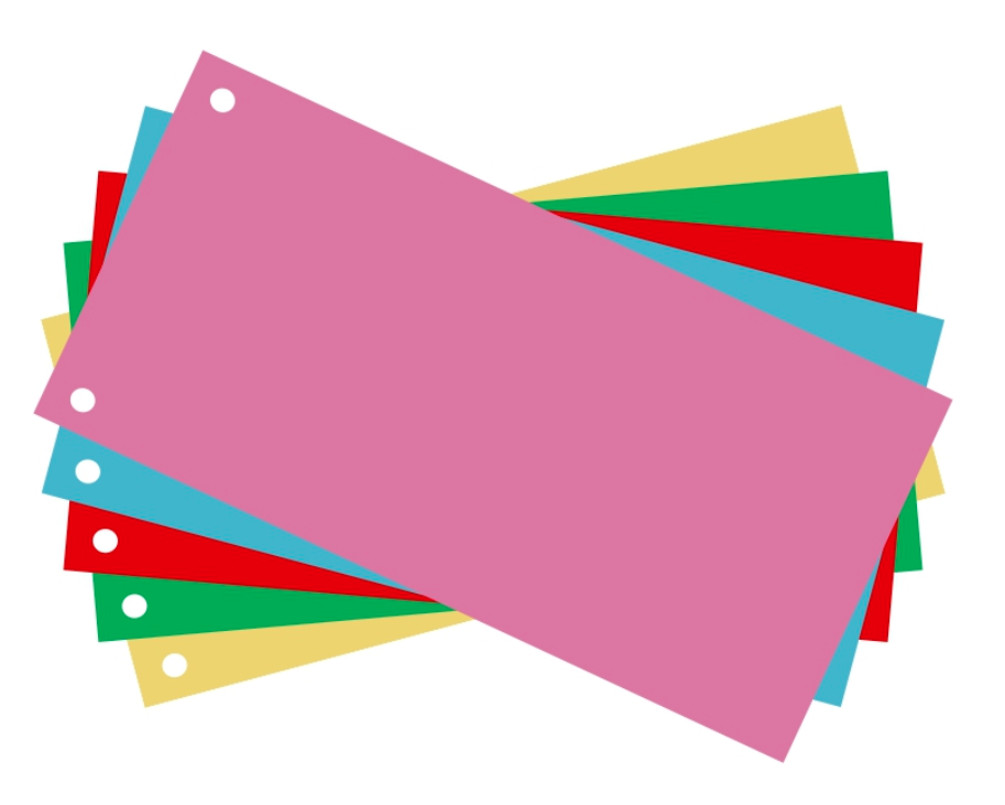 Przekładki 1/3 A4, jednokolorowe. Przeznaczone są do segregowania dokumentów. Przekładki wykonane z grubego kartonu barwionego w masie.