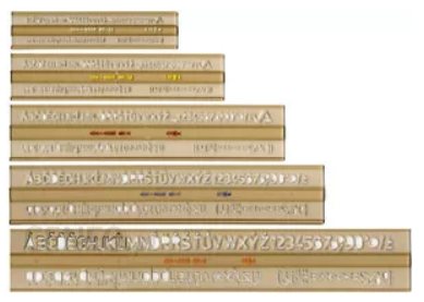 - Szablon posiada wytłoczoną informację o wysokości pisma oraz o grubości tuszografu, jaką należy zastosować dla zachowania zgodności z normą.
