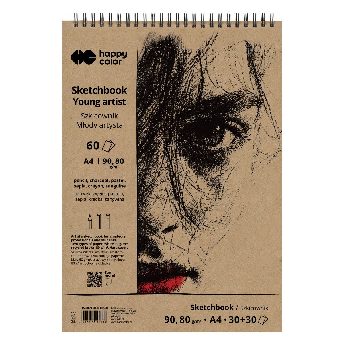 Szkicownik Młody Artysta biało-brązowy (zeszyt) Happy Color A4 - na spirali górnej