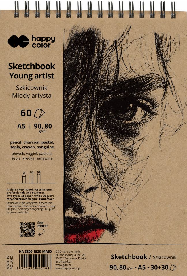 Szkicownik Młody Artysta biało-brązowy (zeszyt) Happy Color A5 - na spirali górnej