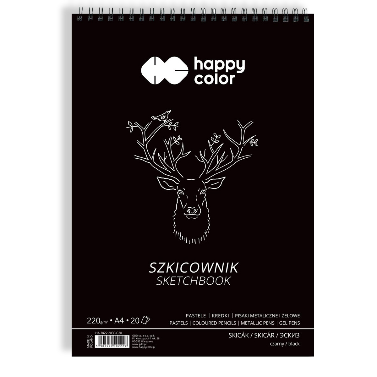 Szkicownik czarny (zeszyt) Happy Color A4 - na spirali górnej