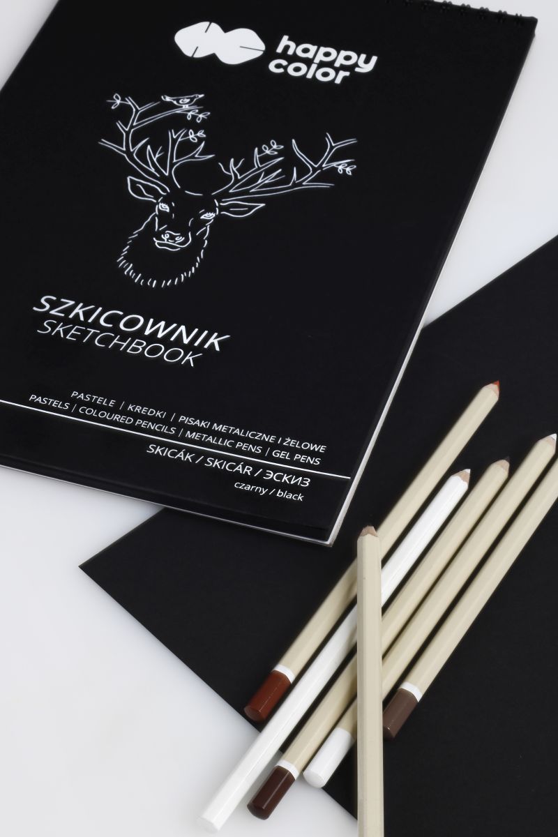 Blok szkicowy z czarnymi kartkami przeznaczony jest do wszystkich głównych technik plastycznych do szkicu, rysunku, pasteli. Polecany do szkiców i rysunków kredkami, pastelami, kredą i węglem, a także prac z wykorzystaniem markerów metalicznych, pisaków żelowych.