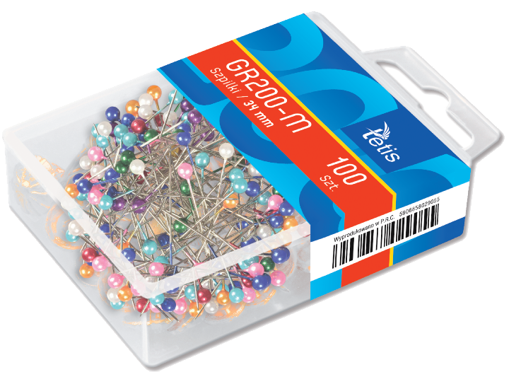 Szpilki długie z kolorowymi główkami 34mm Tetis - 100 sztuk