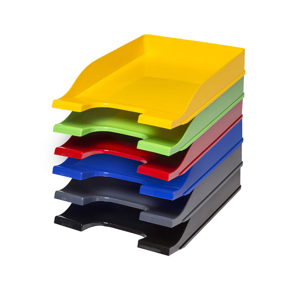 Przezroczysta szuflada na biurko wykonana z wytrzymałego polistyrenu. Z przodu znajduje się miejsce do naklejenia etykiety. Specjalnie wyprofilowany przód zabezpiecza dokumenty przed wypadaniem. Kilka szuflad można ze sobą łączyć kaskadowo.