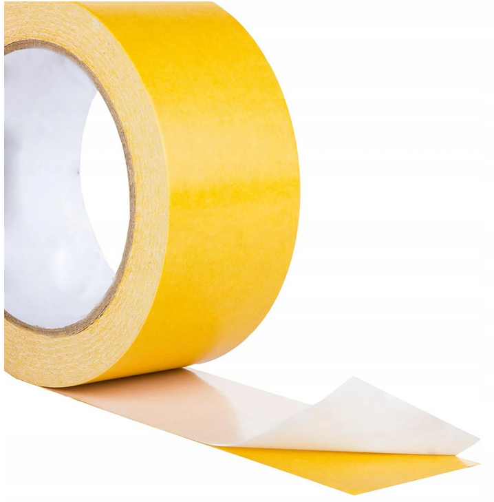 Taśma wykonana z włókien bawełnianych, dwustronnie klejąca, powleczona białym, kauczukowym klejem syntetycznym i podwójnie silkonowaną okleiną papierową.