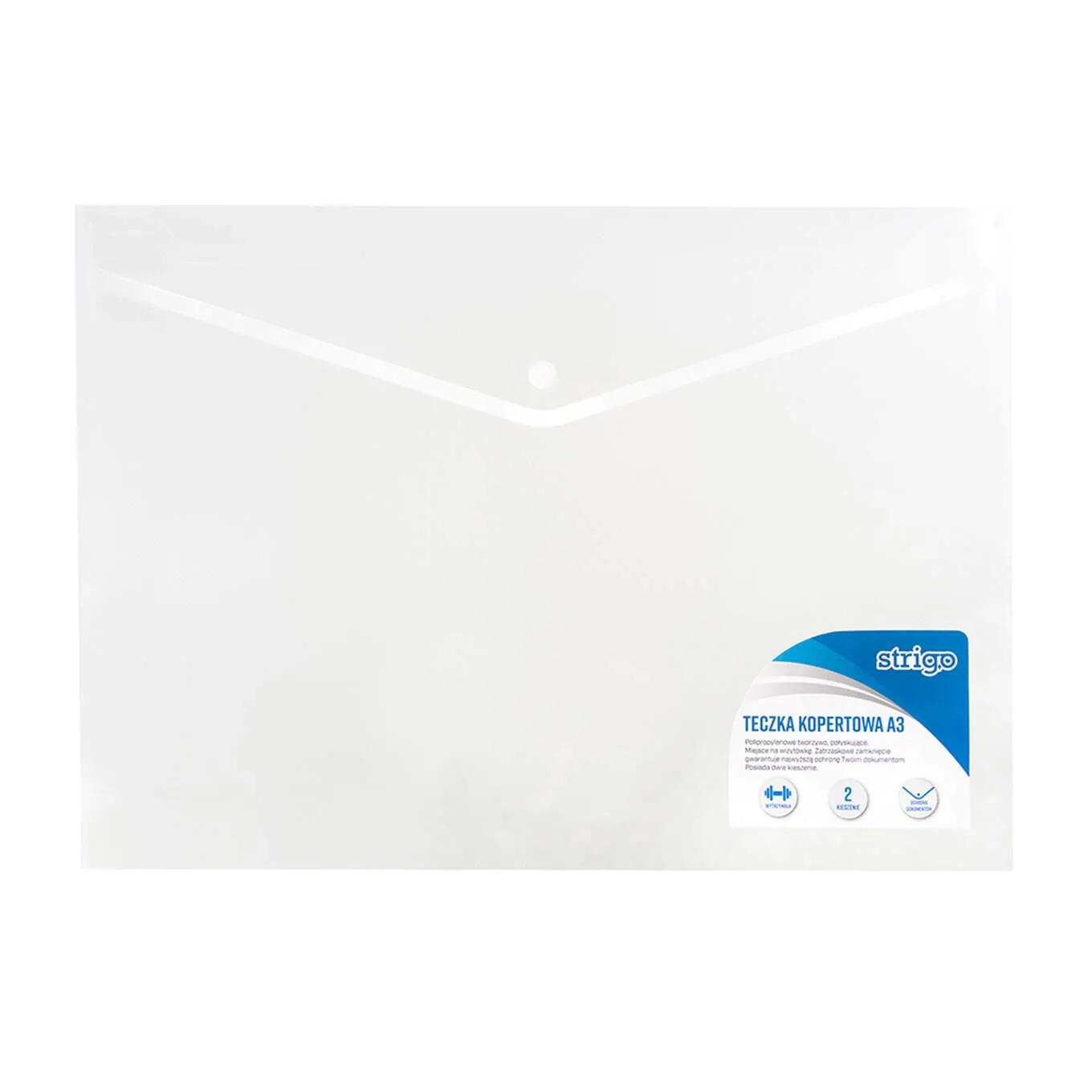 Teczka kopertowa PP Strigo zamykana na zatrzask A3 - transparentna (biała)