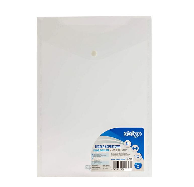 Teczka kopertowa PP Strigo zamykana na zatrzask A5 pionowa - transparentna (biała)