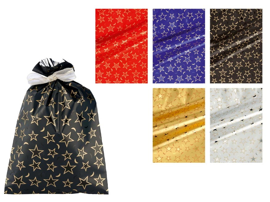 Torebka prezentowa foliowa (celofanowa) 16 x 25 cm - gwiazdki - różne kolory
