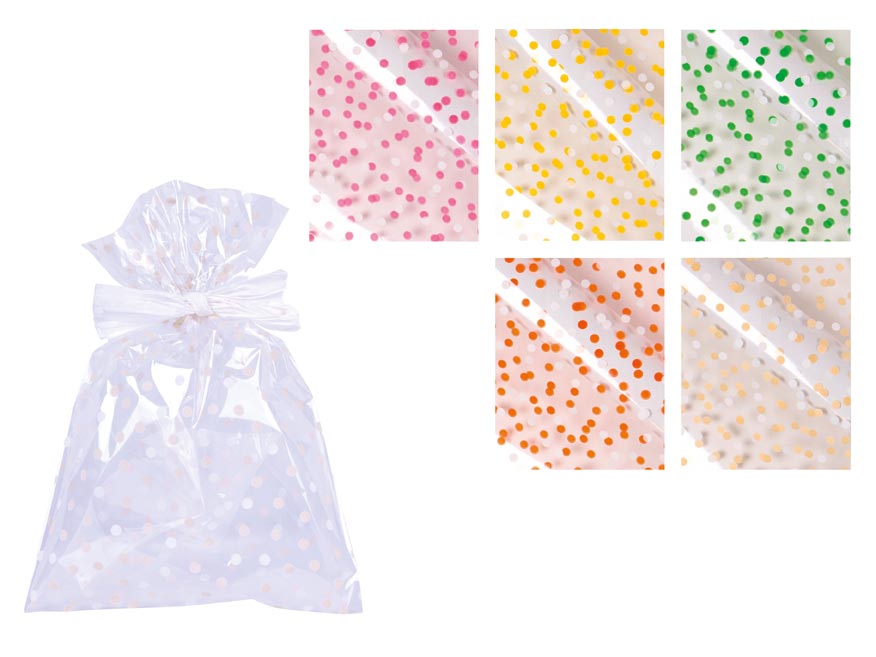 Torebka prezentowa foliowa (celofanowe) w kolorowe kropki 20 x 32 cm - różne kolory