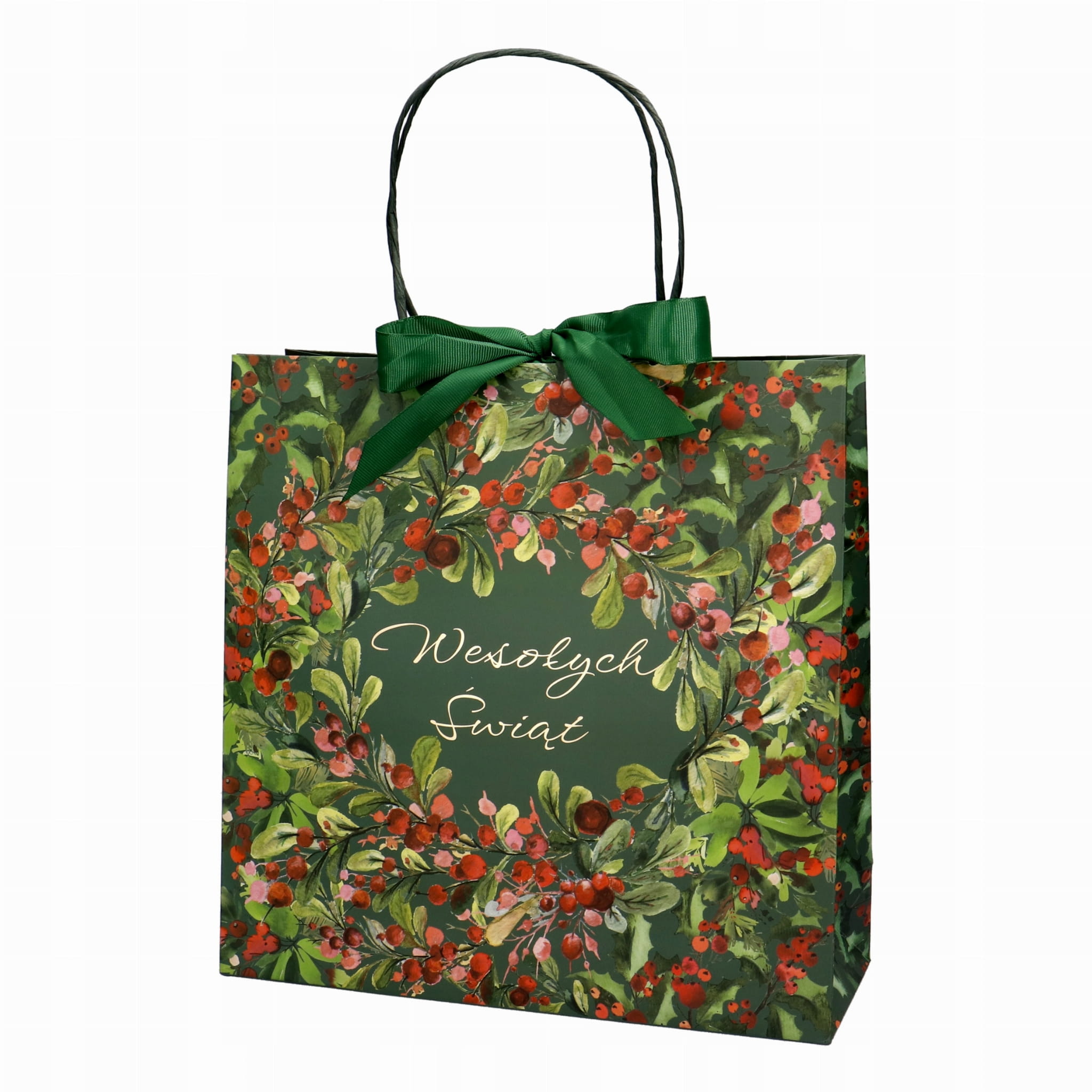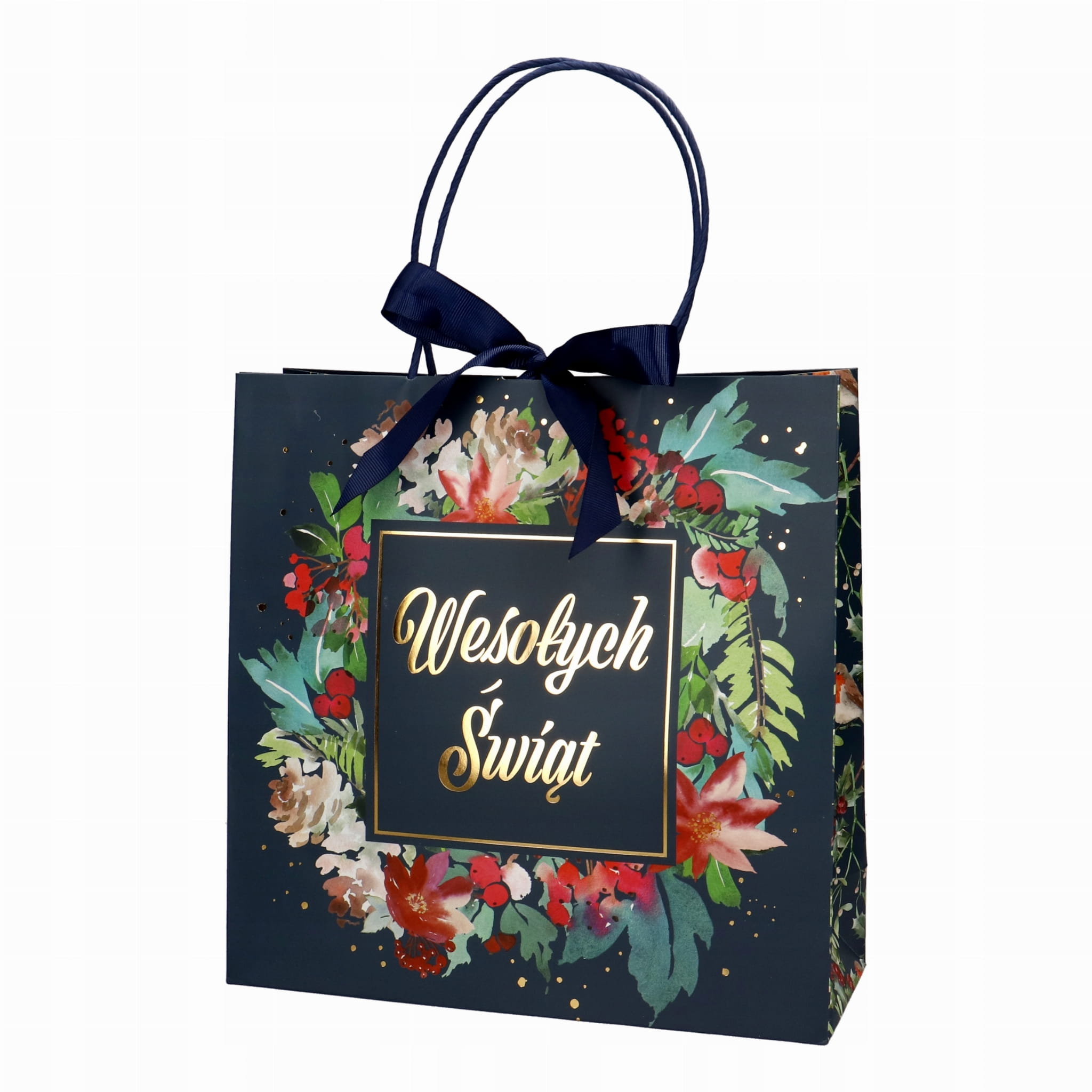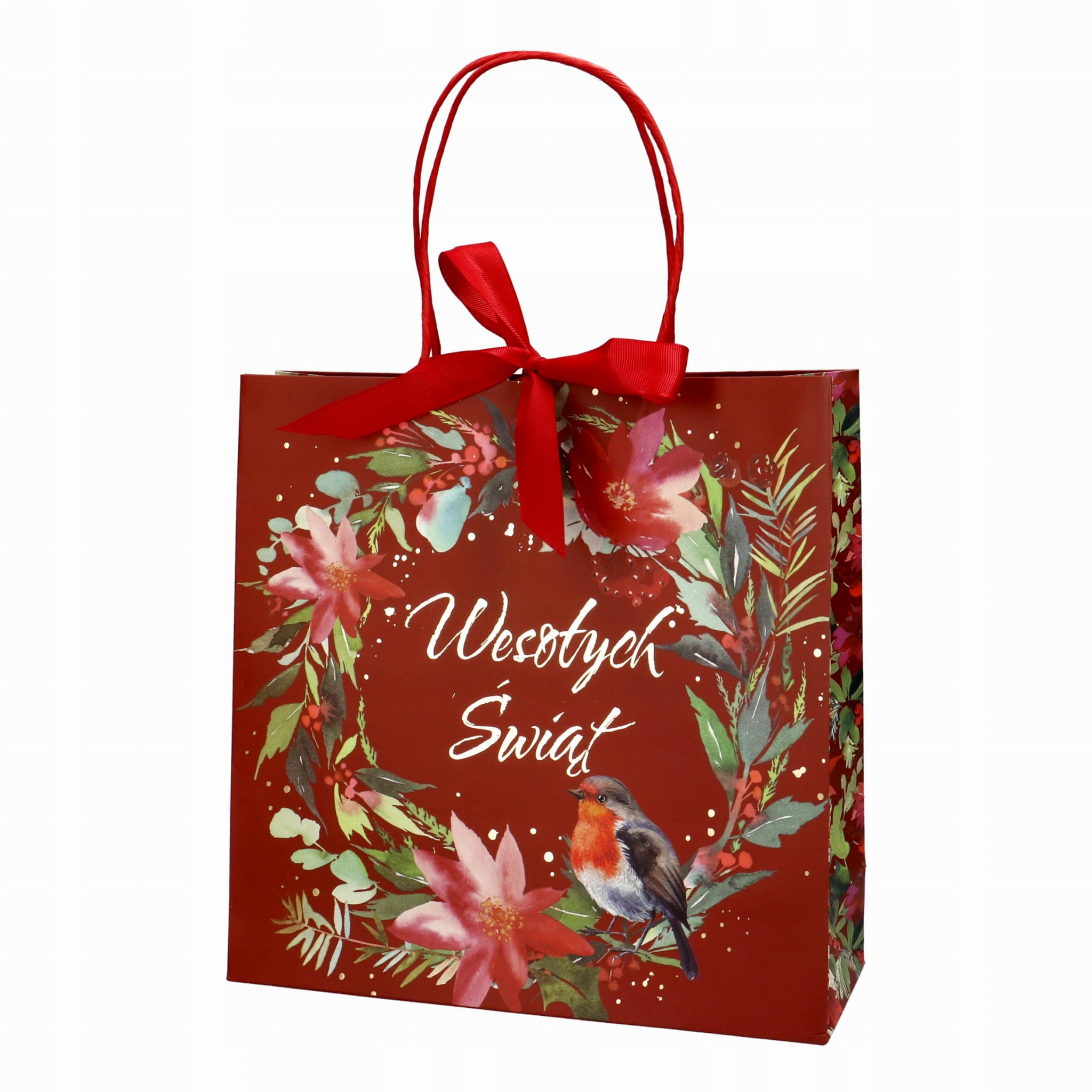 Torebka prezentowa z kokardą z motywem bożonarodzeniowym