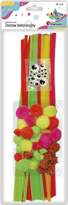 Zestaw dekoracyjny Titanum Craft-Fun Series - druciki, ruchome oczka i pompony w neonowych kolorach - 80 sztuk