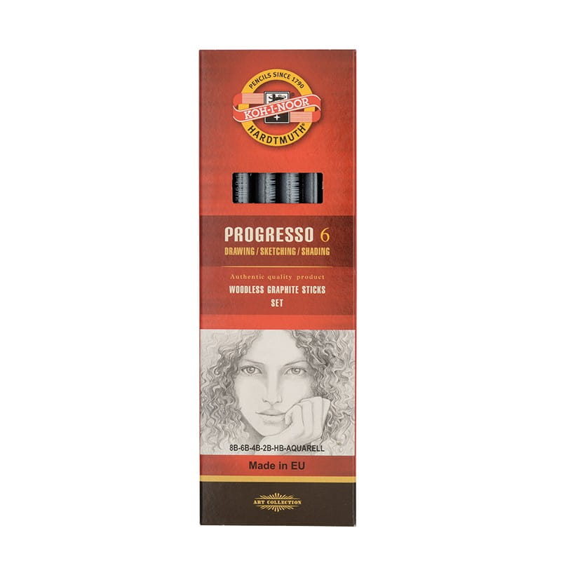Zestaw ołówków bezdrzewnych KOH-I-NOOR Progresso 8B, 6B, 4B, 2B, HB, AQUARELL