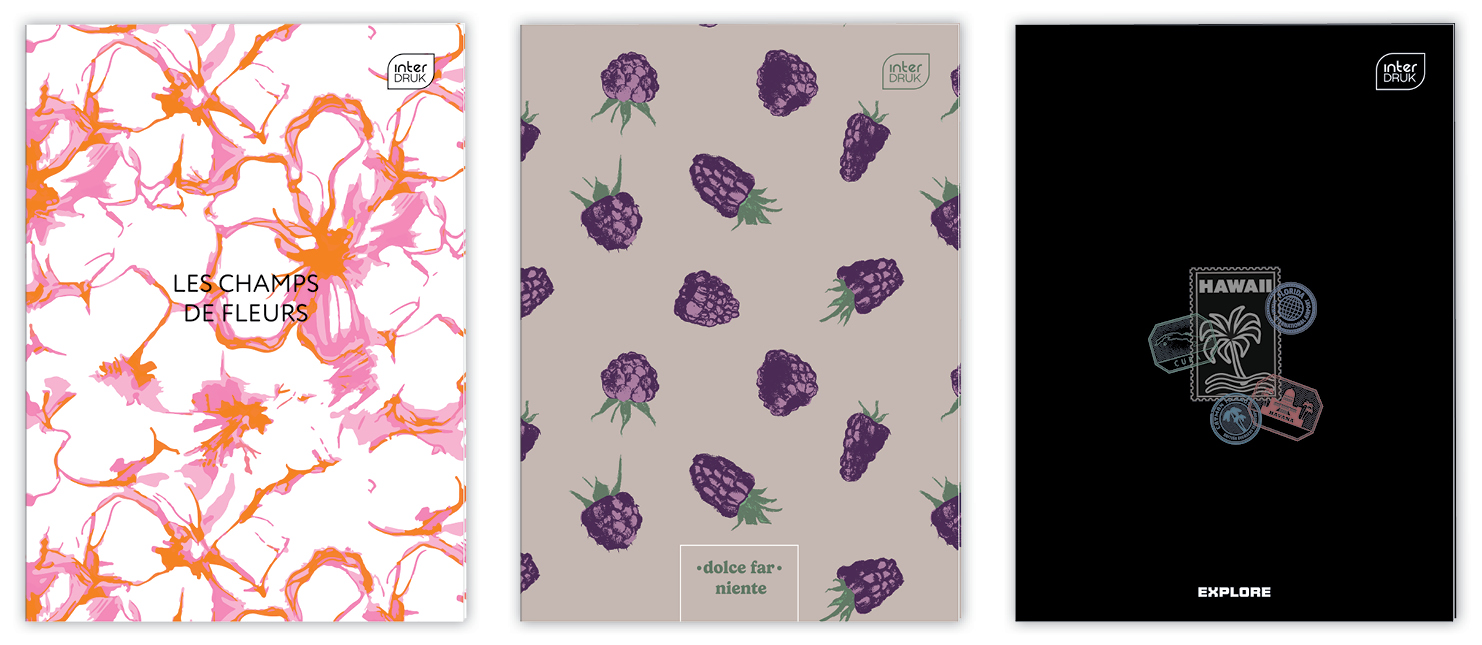 - Zeszyty w intensywnych kolorystycznie grafikach, zaprojektowane zgodnie z aktualnymi trendami w designie i modzie.