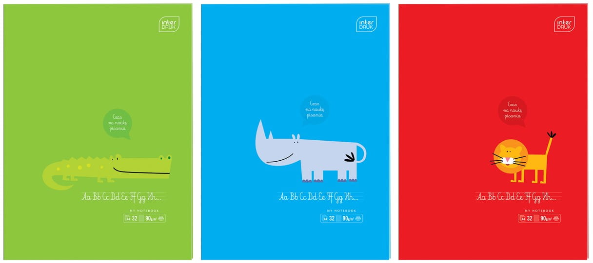 - Zeszyt w wąskie kolorowe linie, ułatwiające naukę pisania, bez marginesu.