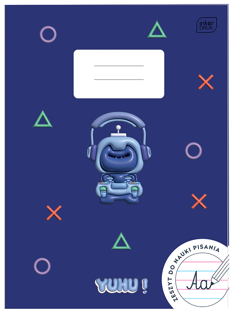 - Zeszyt w wąskie kolorowe linie, ułatwiające naukę pisania, z wyraźnym marginesem.