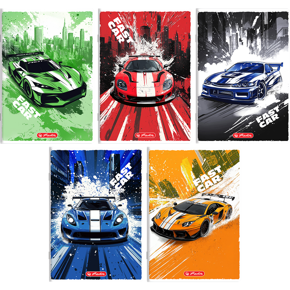 Zeszyt A5 Herlitz Fast Car 32-kartkowy w wąskie kolorowe linie - różne wzory okładek