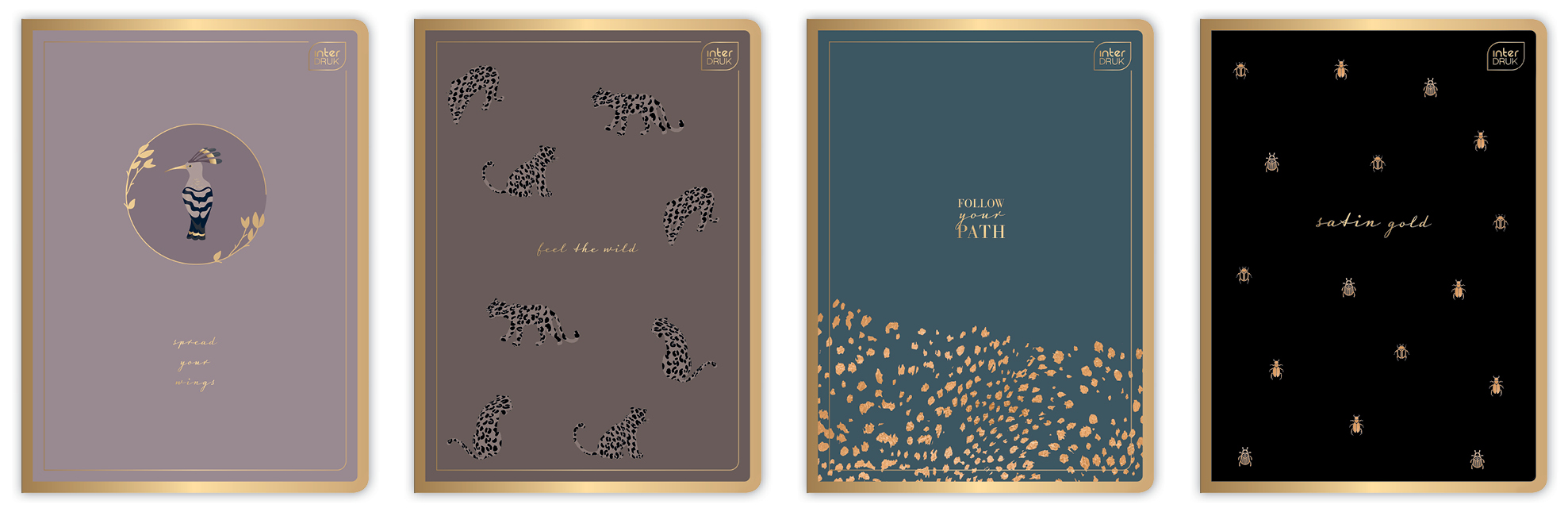 Zeszyt A5 Interdruk Satin Gold 80-kartkowy w szerokie linie - różne wzory okładek