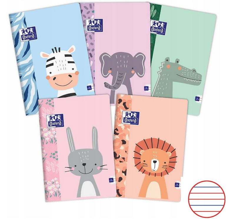 Zeszyt Oxford Kids A5 16-kartkowy w kolorową wąską linię - zwierzątka