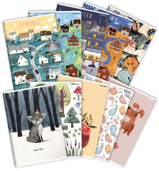 - Grzbiet zszywany zszywkami zapewnia trwałość zeszytów i wygodę pisania.