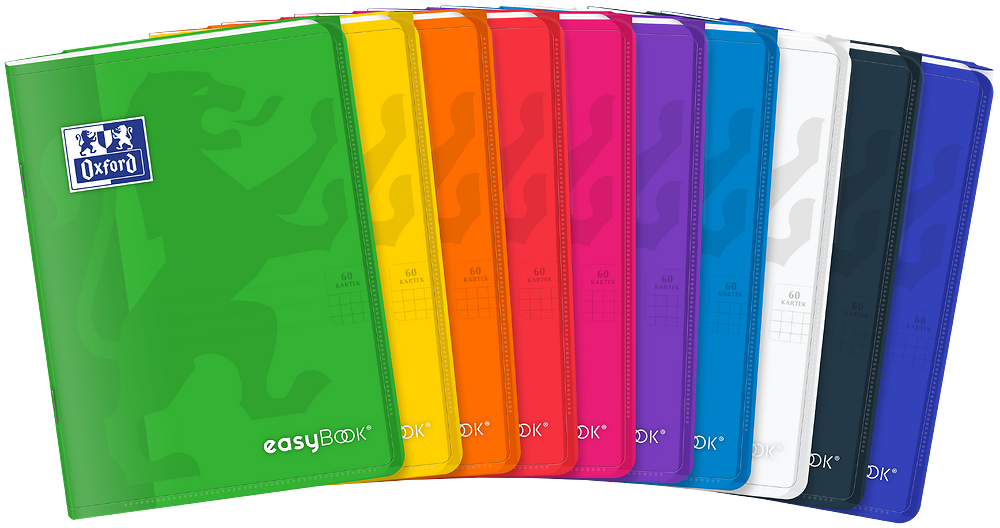 Kolekcja Easybook to zeszyty z półprzezroczystą, trwałą polipropylenową okładką oraz przedstawionym wizerunkiem lwa. Na przodzie zeszytu bardzo praktyczna kieszeń na luźne kartki, natomiast na końcu zeszytu teczka na dokumenty, której skrzydło służy również jako zakładka. Śnieżnobiały i idealnie gładki papier Optik Paper o gramaturze 90 g/m2 sprawi, że pisanie w zeszycie będzie przyjemnością.