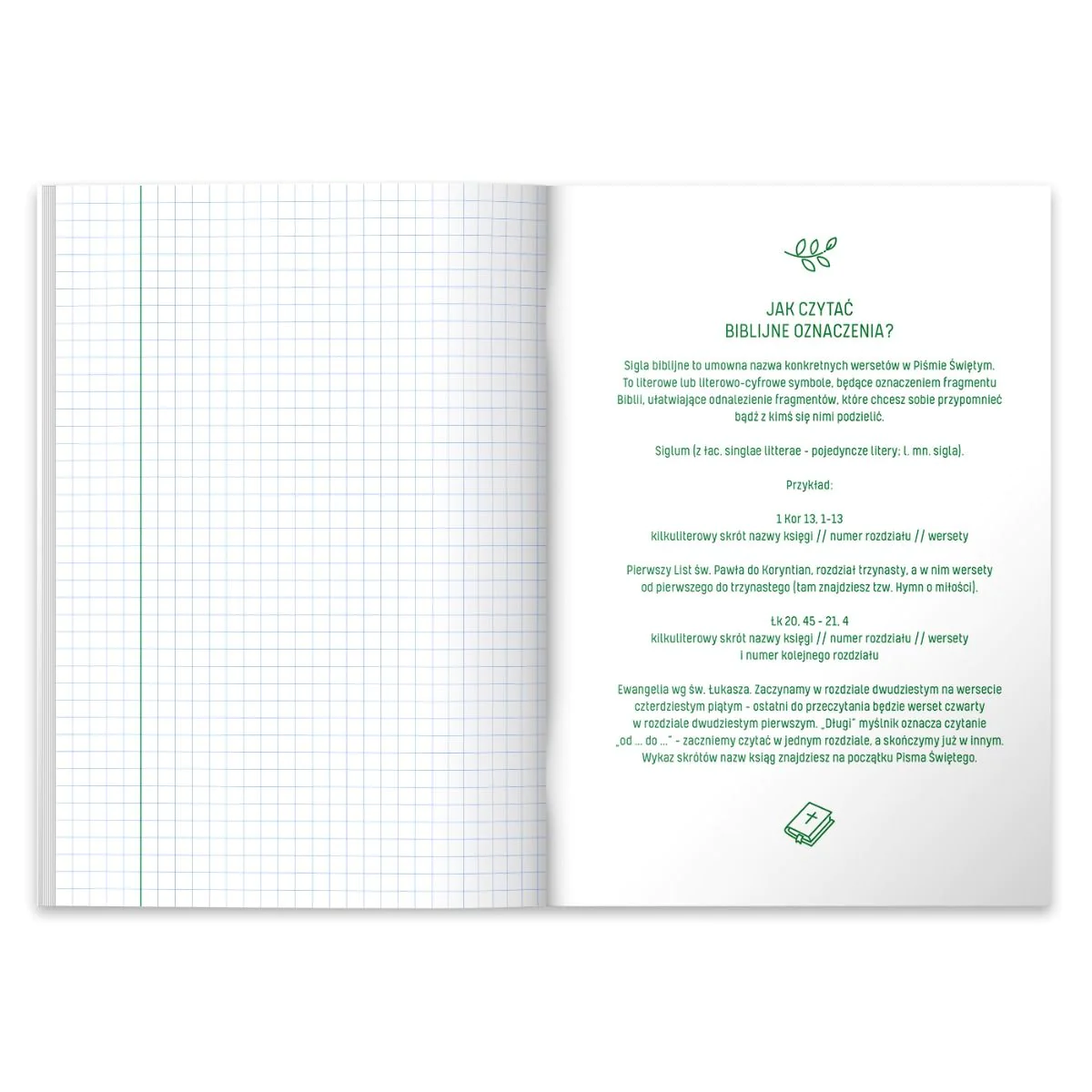 - Jasna niebieska liniatura + zielony margines.